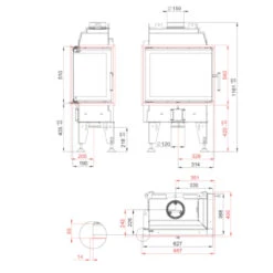 - Maße des Kamins: Höhe: 159,3 (+6,0/-4,0) cm x Breite: 99,2 cm x Tiefe: 58,7 cm