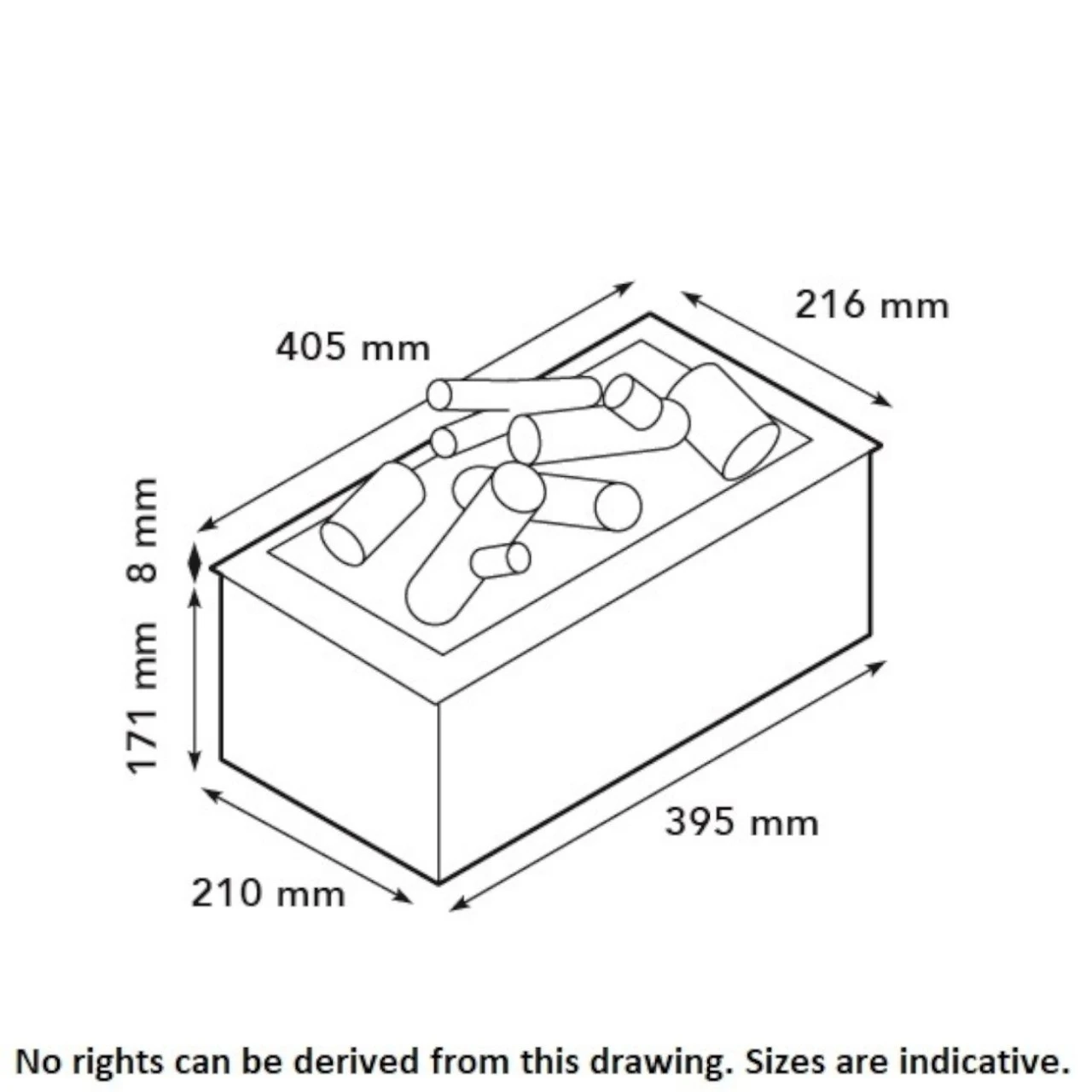 Maße (nur Einbaukasten): Höhe: 17,1 cm x Breite: 39,5 cm x Tiefe: 21,0 cm