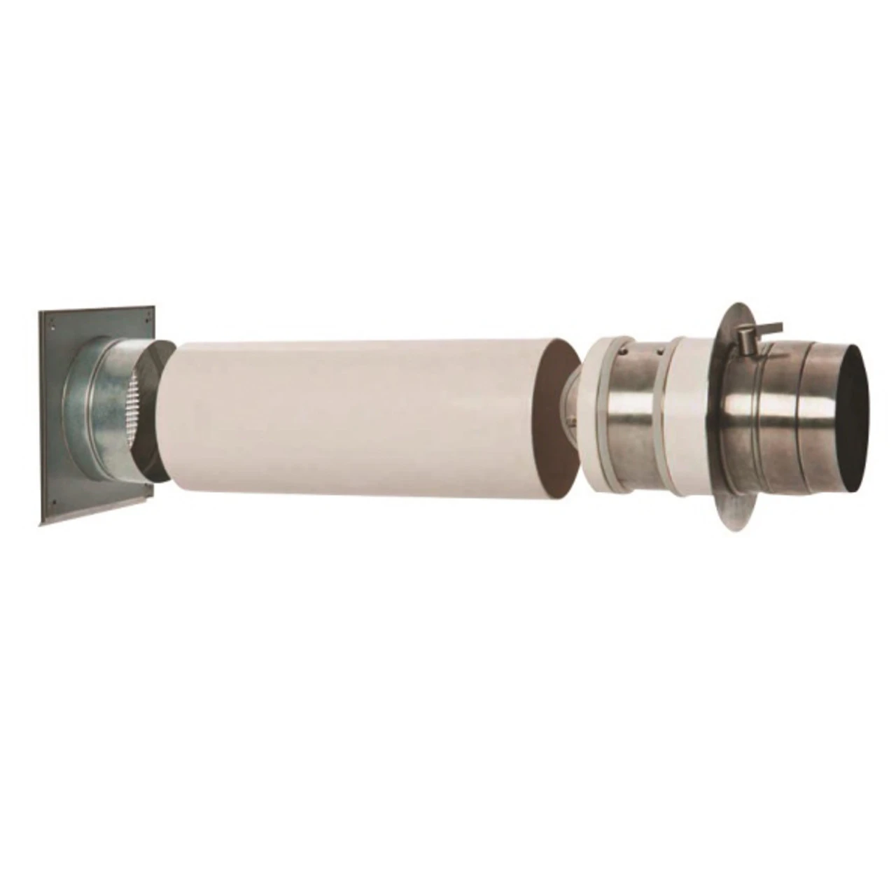 Ist die Ofenanlage nicht in Betrieb, wirkt das CB Doppelklappensystem dem Auskühlen der Bestandteile im Wohnbereich effektiv entgegen. Während des Verbrennungsvorganges wird die Verbrennungsluft über das CB Doppelklappensystem und ein isoliertes Aluflexrohr in die Ofenanlage geleitet. Hierbei kann bei längeranhaltender Verbrennung und sehr kalter Verbrennungsluft der im Wohnraum befindliche Edelstahlbereich der CB Doppelklappe auskühlen. Dies kann zu Bildung von Kondensat an diesem Bauteil führen. Diesem Vorgang kann effektiv durch das Anbringen der CB Isoliermuffe entgegengewirkt werden. Die Montage: