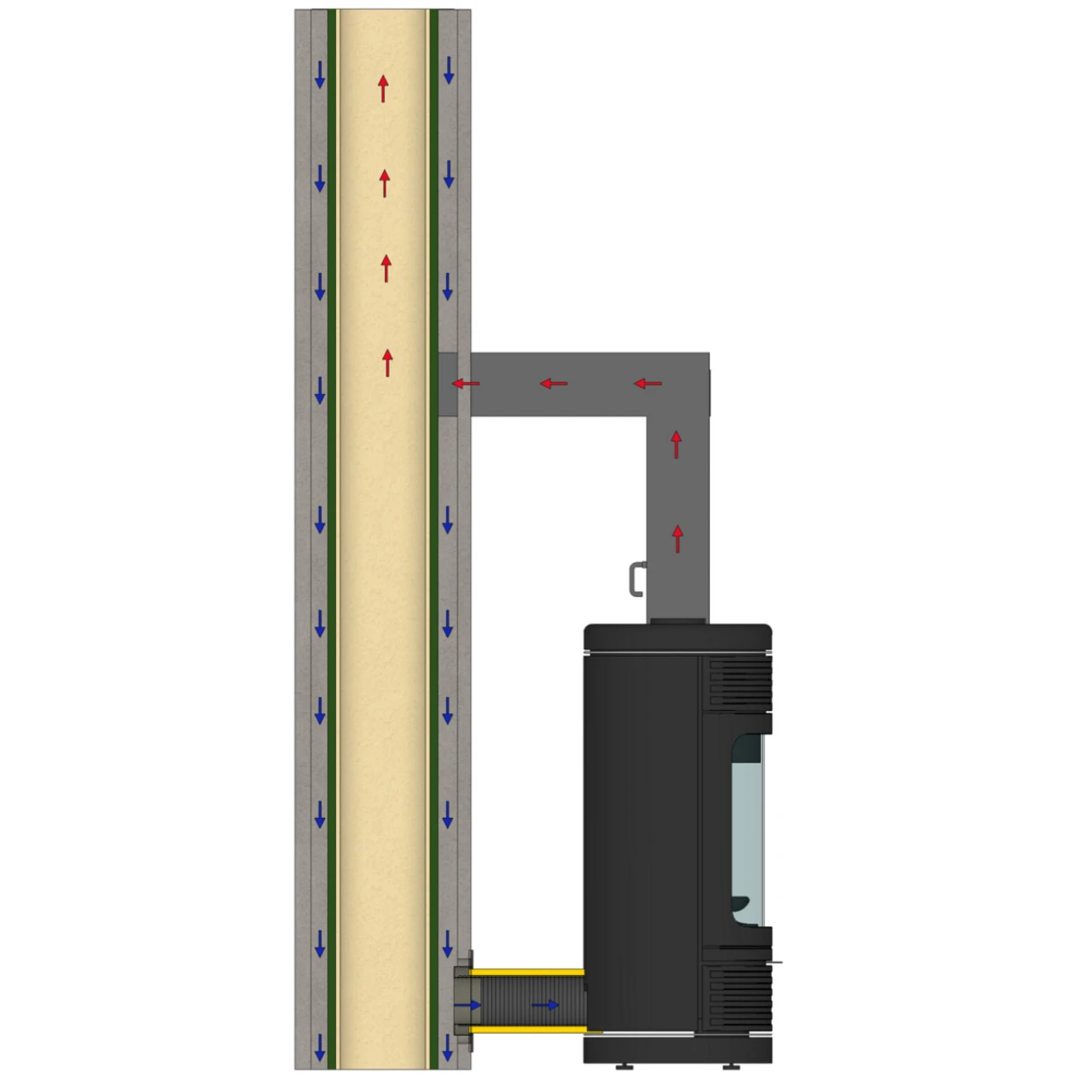 In vielen Fällen erhält die Ofenanlage ihre Verbrennungsluft über einen Schornstein mit Ringspalt ( LAS: Luft-Abgas-Schornstein). Der CB Schornstein – Verbrennungsluftstutzen für LAS Ringspalt sorgt hierbei für eine optimale Montage des Aluflexrohres. Gerade bei isolierten Aluflexrohren gestaltete sich die Montage am Mantelstein in der Vergangenheit oft als schwierig.