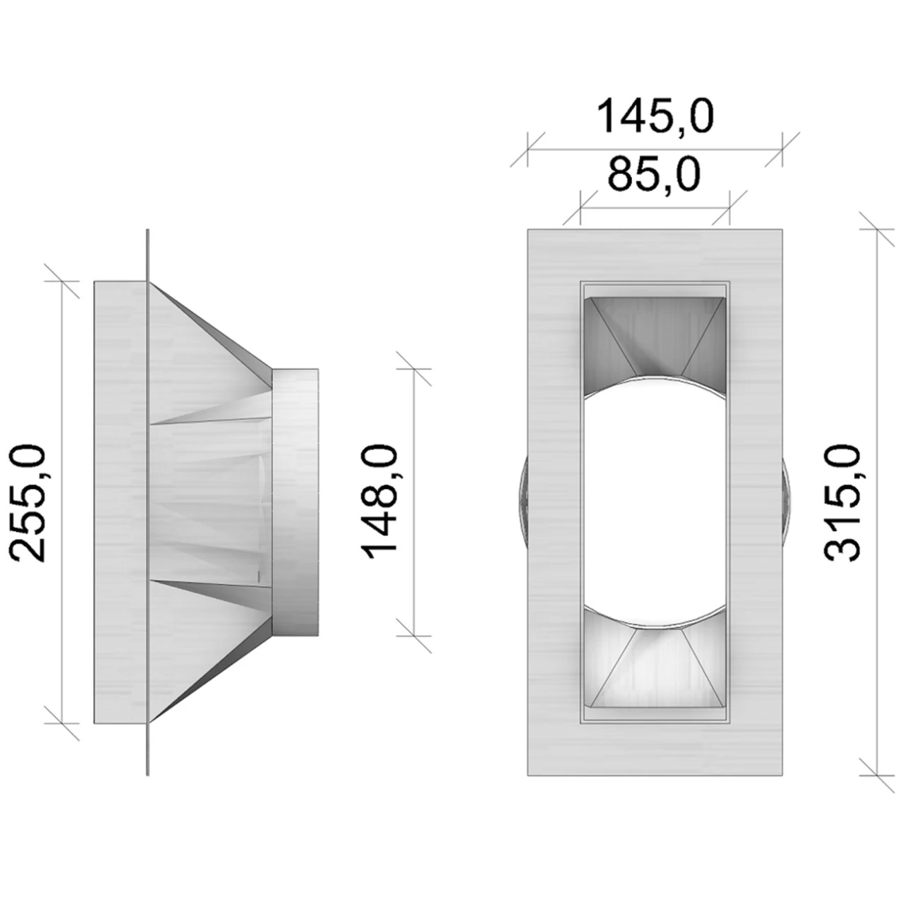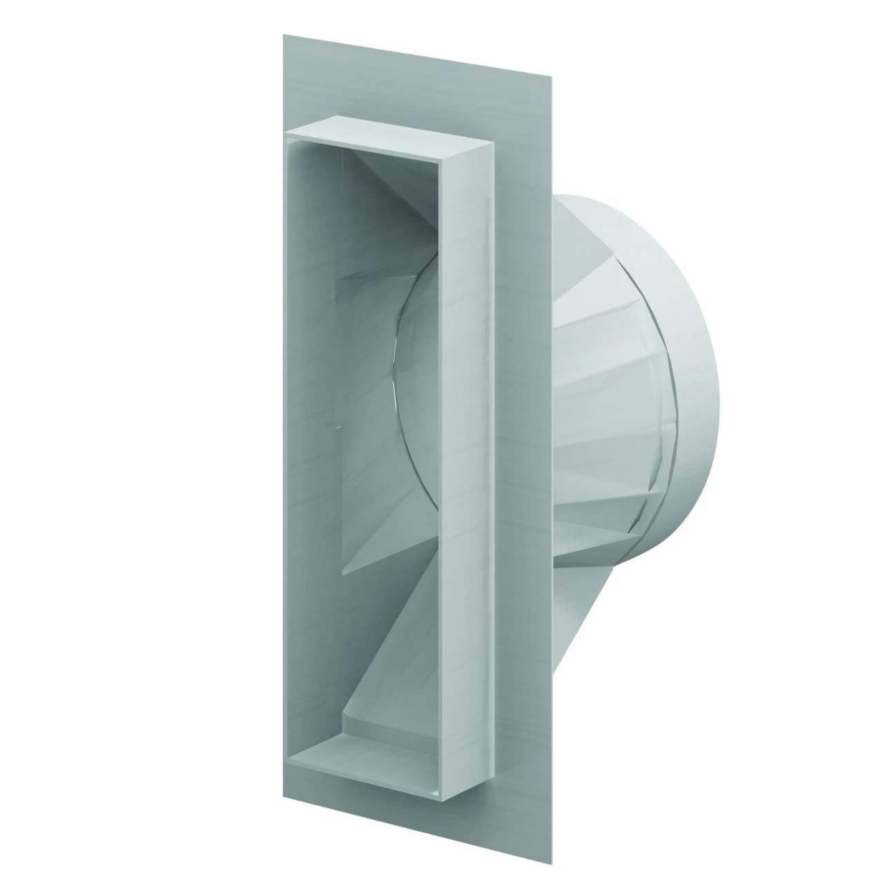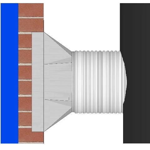Der CB Schornstein – Verbrennungsluftstutzen für den separaten Schacht sorgt hierbei für einen optimalen Übergang vom eckigen Schacht, hin zur runden Verbrennungsluftleitung, Durchmesser 150 mm.