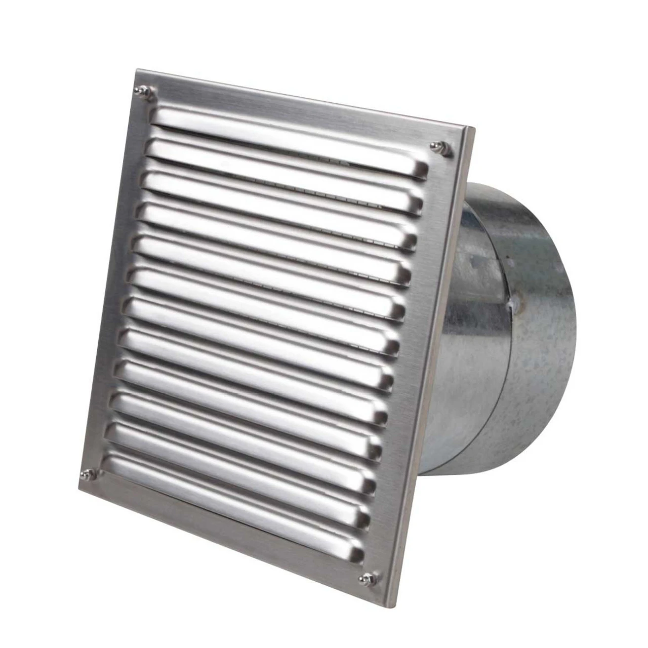 Außenluftgitter für einfache und schnelle Montage in der Gebäudeaußenwand mit integriertem Anschlussstutzen für ein Flexrohr. Eine Kernbohrung mit 18 cm Durchmesser ist zur Aufnahme des Gitters (inkl. Insektenschutzgitter) ausreichend.