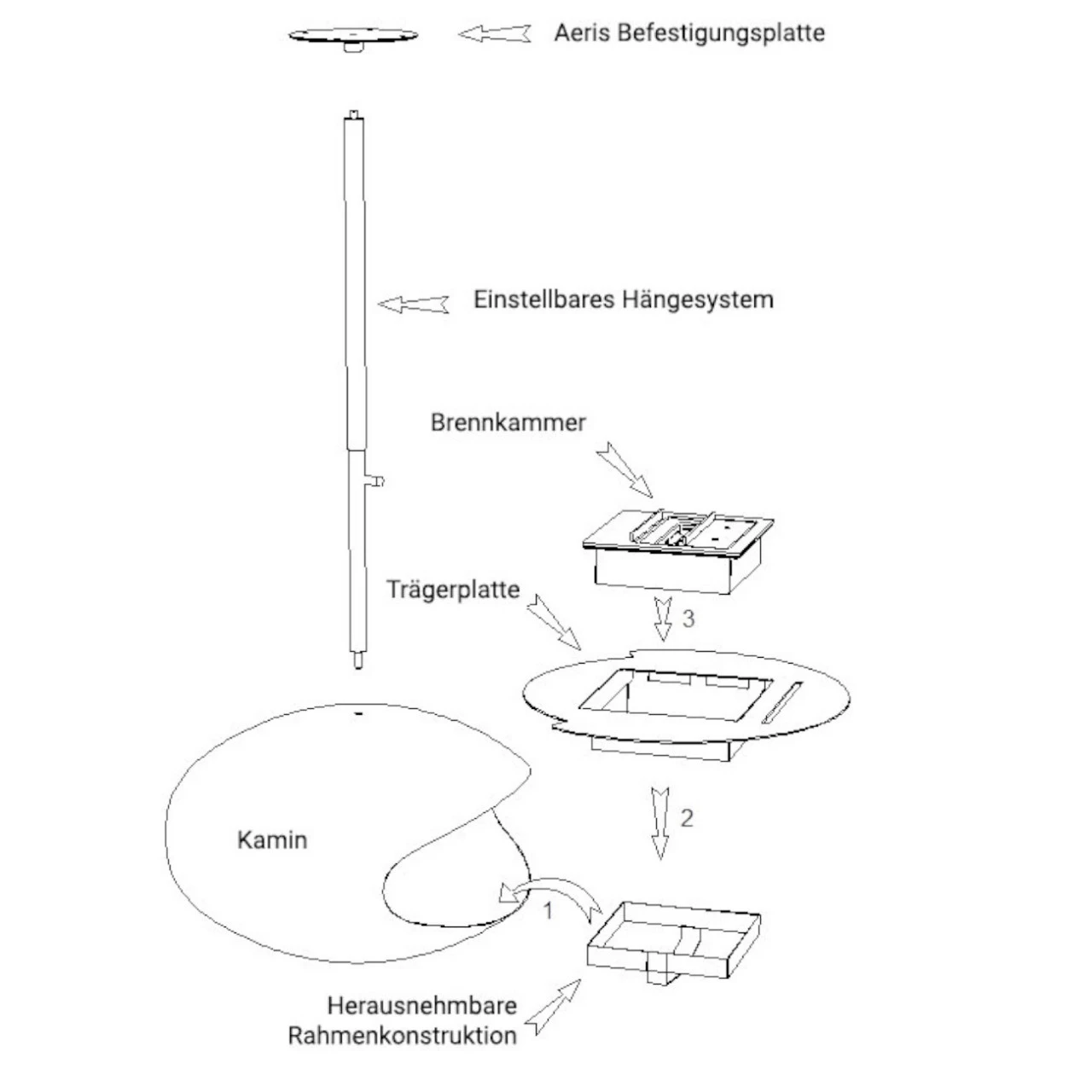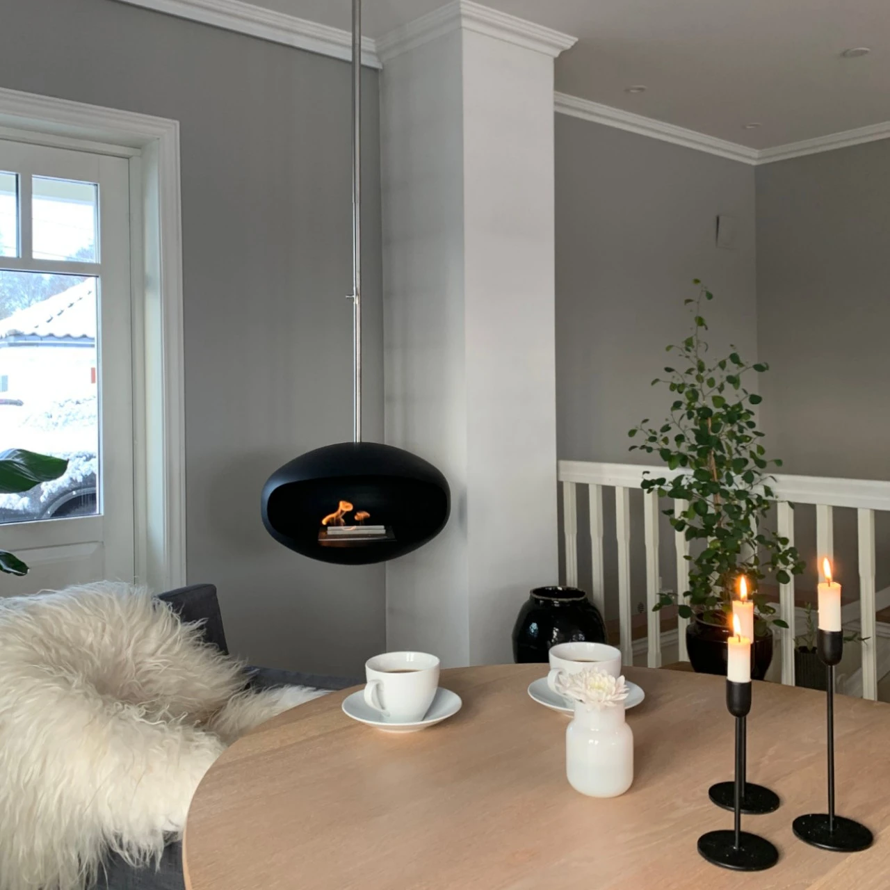 Der luxuriöse und moderne AERIS Biokamin ist ein hängendes Designelement, das die volle Einstellbarkeit eines modernen Hängekamins bietet. Die Hängestange ist in sechs verschiedenen Höhen mit einer Drehung um 360° einstellbar (nur bei Edelstahl Teleskopstange).