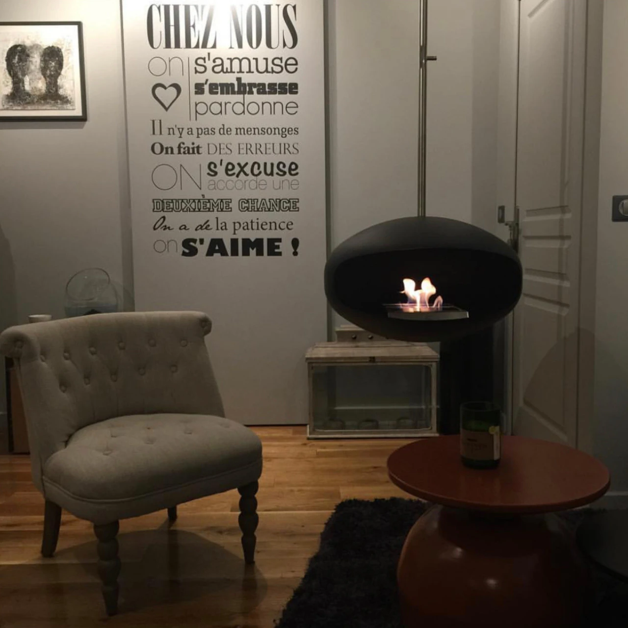 Cocoon-Kamine benutzen Bioethanol, eine sichere und saubere erneuerbare Energiequelle in flüssiger Form, welche eine kraftvolle, duftlose und sauber verbrennende Flamme produziert, die sowohl für den Verbraucher als auch die Umwelt sicher ist. Ein Cocoon-Kamin produziert so wenig CO2 wie eine Kerze.