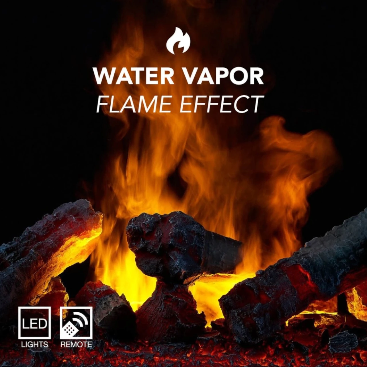 Der Albany Wasser-Dampfkamin verfügt über leuchtende Holzäste mit LED, wodurch dieser elektrische Kamin mit Wasserdampf kaum noch von einem echten Feuer zu unterscheiden ist. Die integrierte elektrische Heizung macht die Illusion eines offenen Kamins noch realistischer.