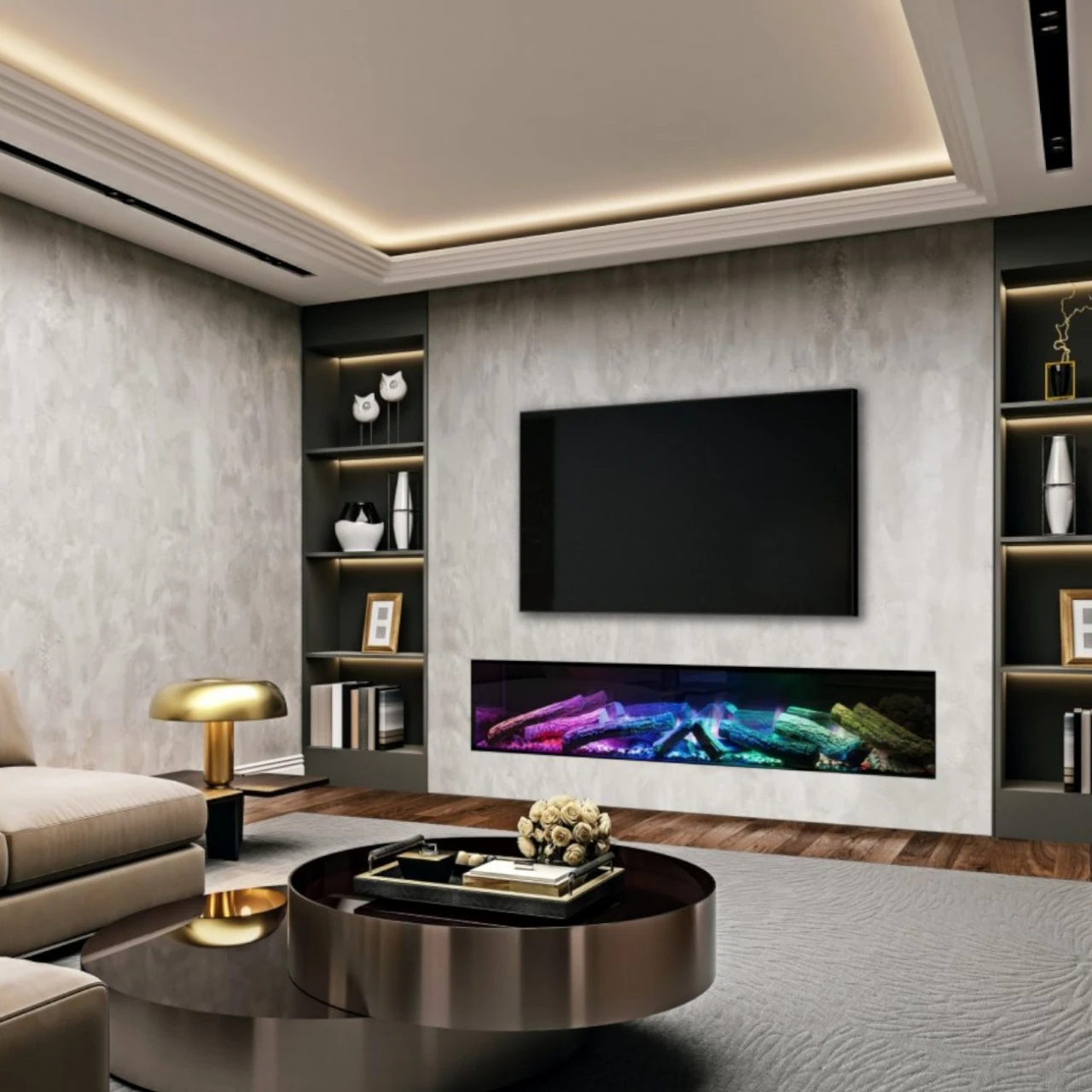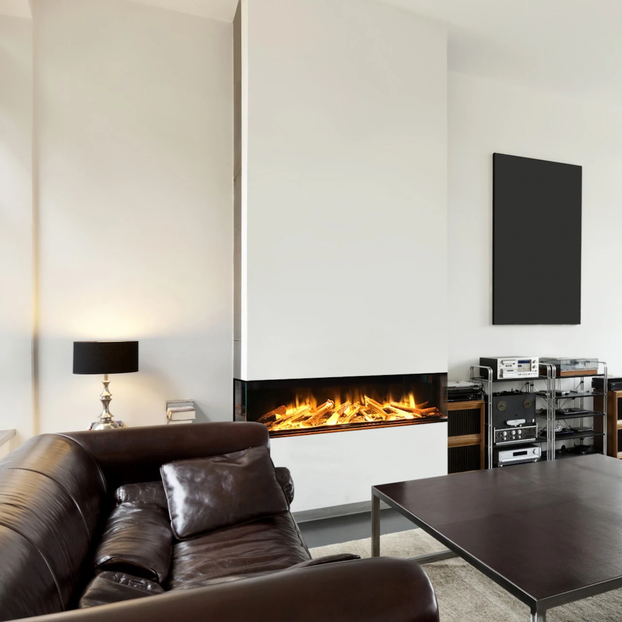 Das entspiegelte Glas sorgt für eine besondere Holzfeueroptik, als ob man vor einem offenen Kamin sitzt. Zusammen mit dem realistischen Flammenbild und der eingebauten Heizung kommt selbst für Holzfeuer-Romantiker das echte Kamin-Gefühl in Ihr Haus.