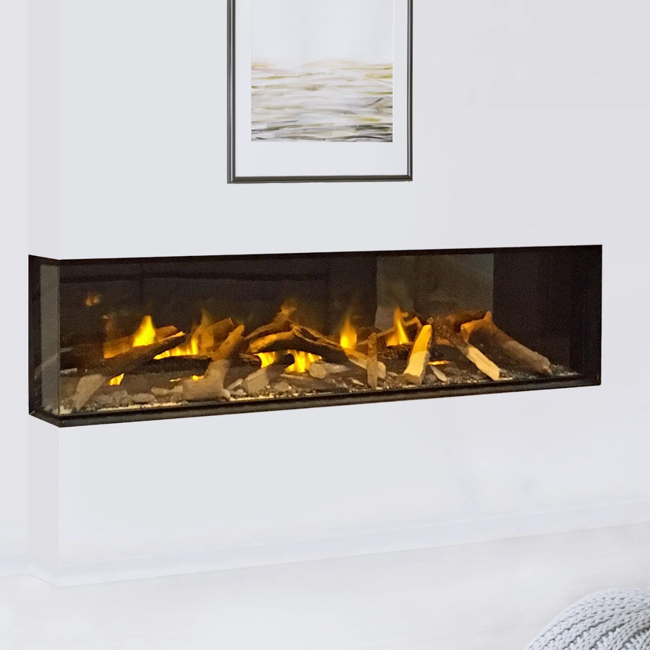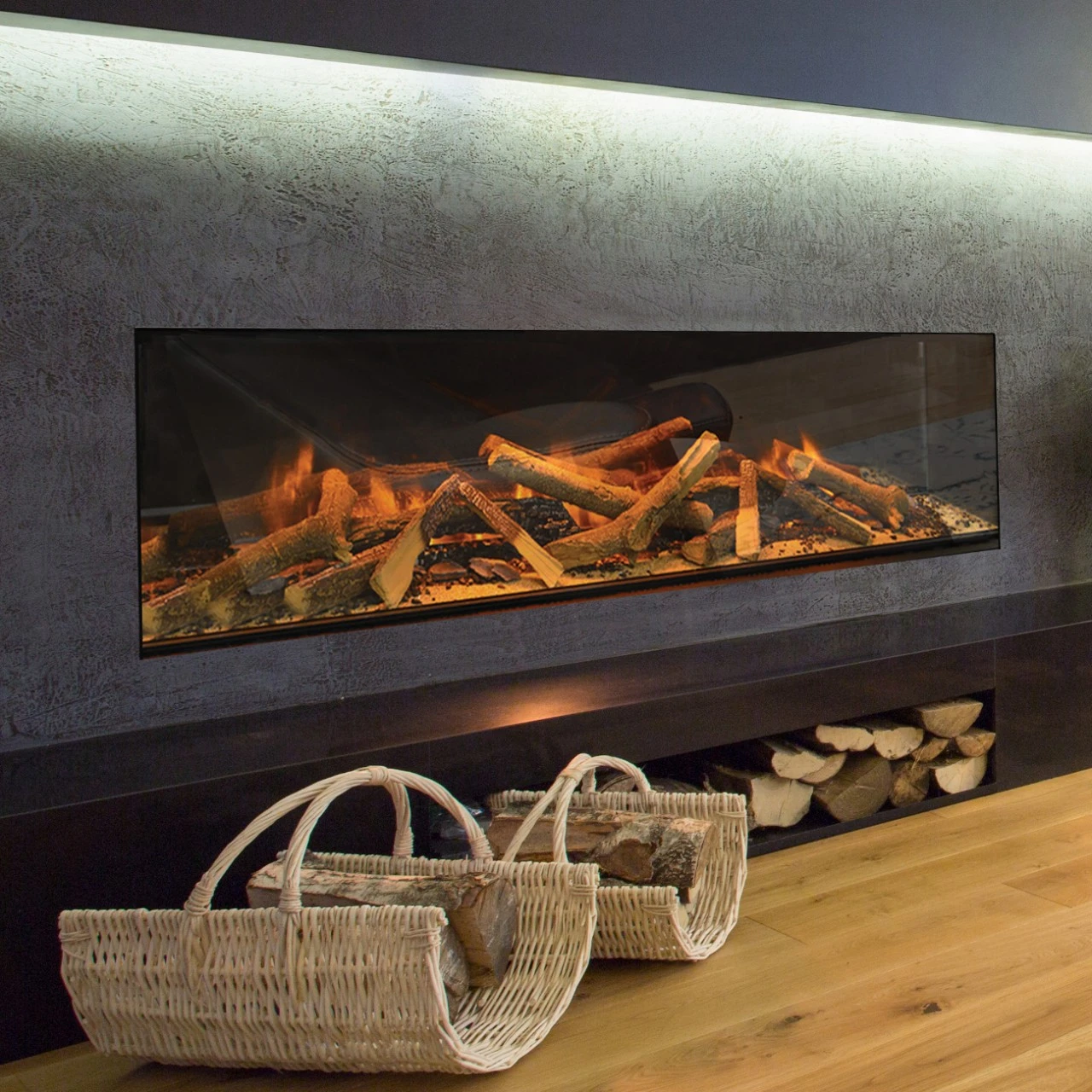 Die Ultra-HD-LED-Technologie verleiht dem Kamin ein tiefes und volles Flammenbild. Durch eine besondere Reflexionstechnologie werden Asche und Glut im Brennerbett täuschend echt nachgebildet. So entsteht, zusammen mit den entspiegelten Glasscheiben ein offener Holzfeuer-Effekt.