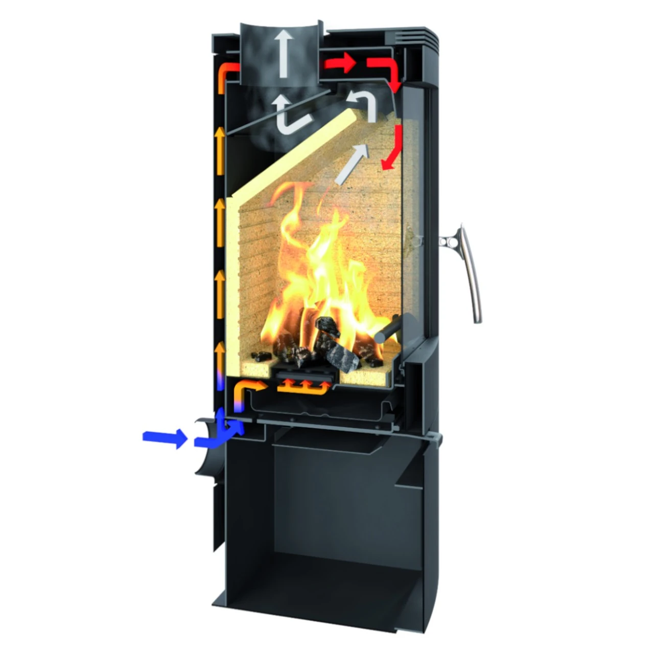 - Externe Luftzufuhr / Raumluftunabhängiger Betrieb: Ja, optional anschließbar, mit der Externen Luftzufuhr können Sie den Ofen mit Luft aus einem Nebenraum oder von außen beheizen. Dies wirkt sich positiv auf das Raumklima aus. Ermöglicht auch den Anschluss einer elektronischen Verbrennungsluft Regelung;