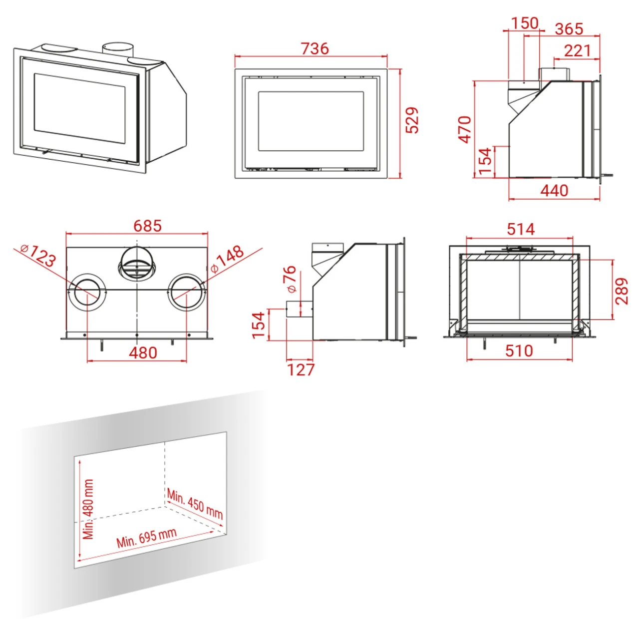 Modell: Lotus H470 Einbau-Kaminkassette 6 kW opt ext Luftzufuhr