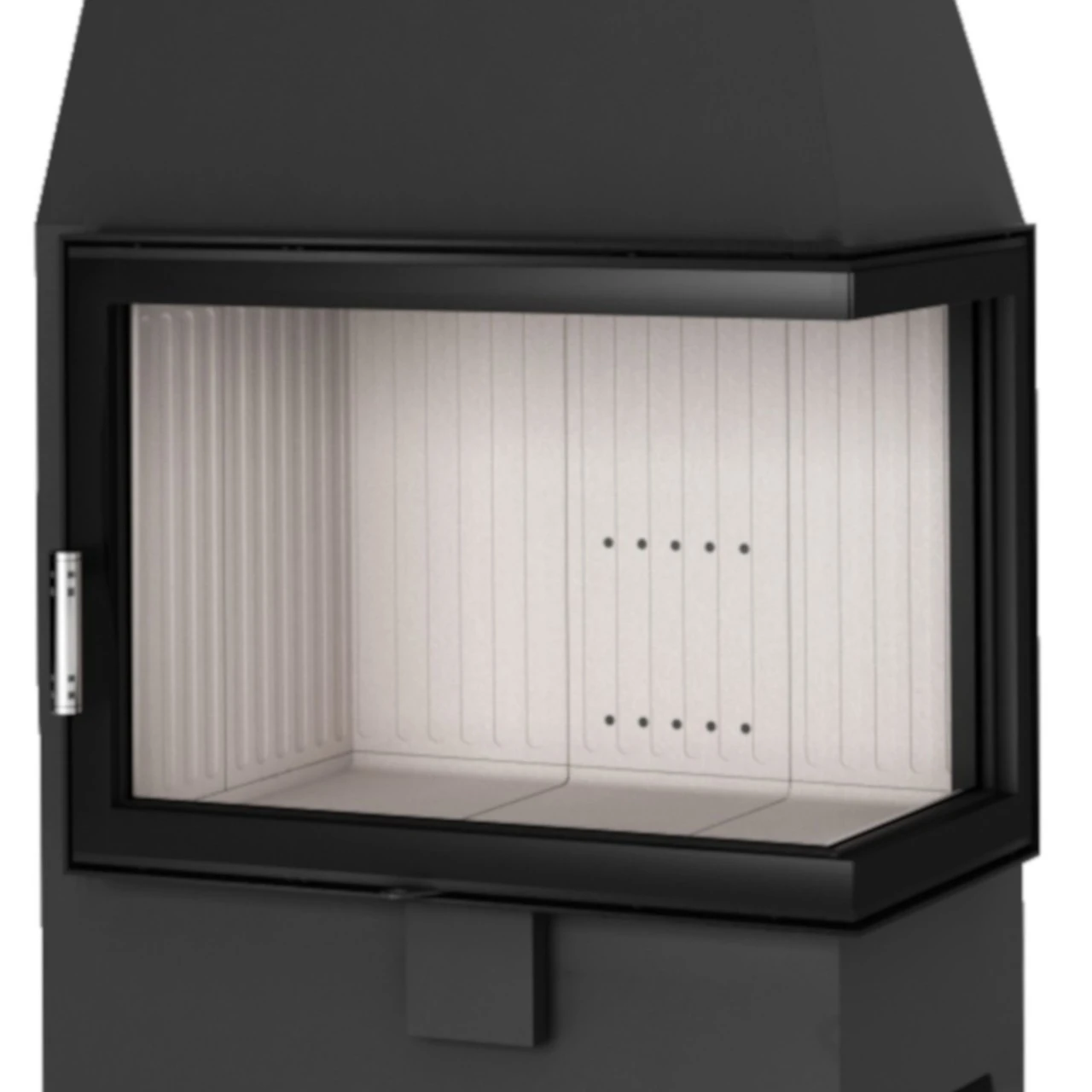 Der Feuerraum ist mit einer 3 cm starken Keramik-Auskleidung in weiß ausgestattet. Der Kamineinsatz verfügt über eine Tür mit einem ergonomischen und belüfteten Öffnungsgriff aus Edelstahl und ist für eine langfristige, störungsfreie und ökonomische Nutzung gebaut.