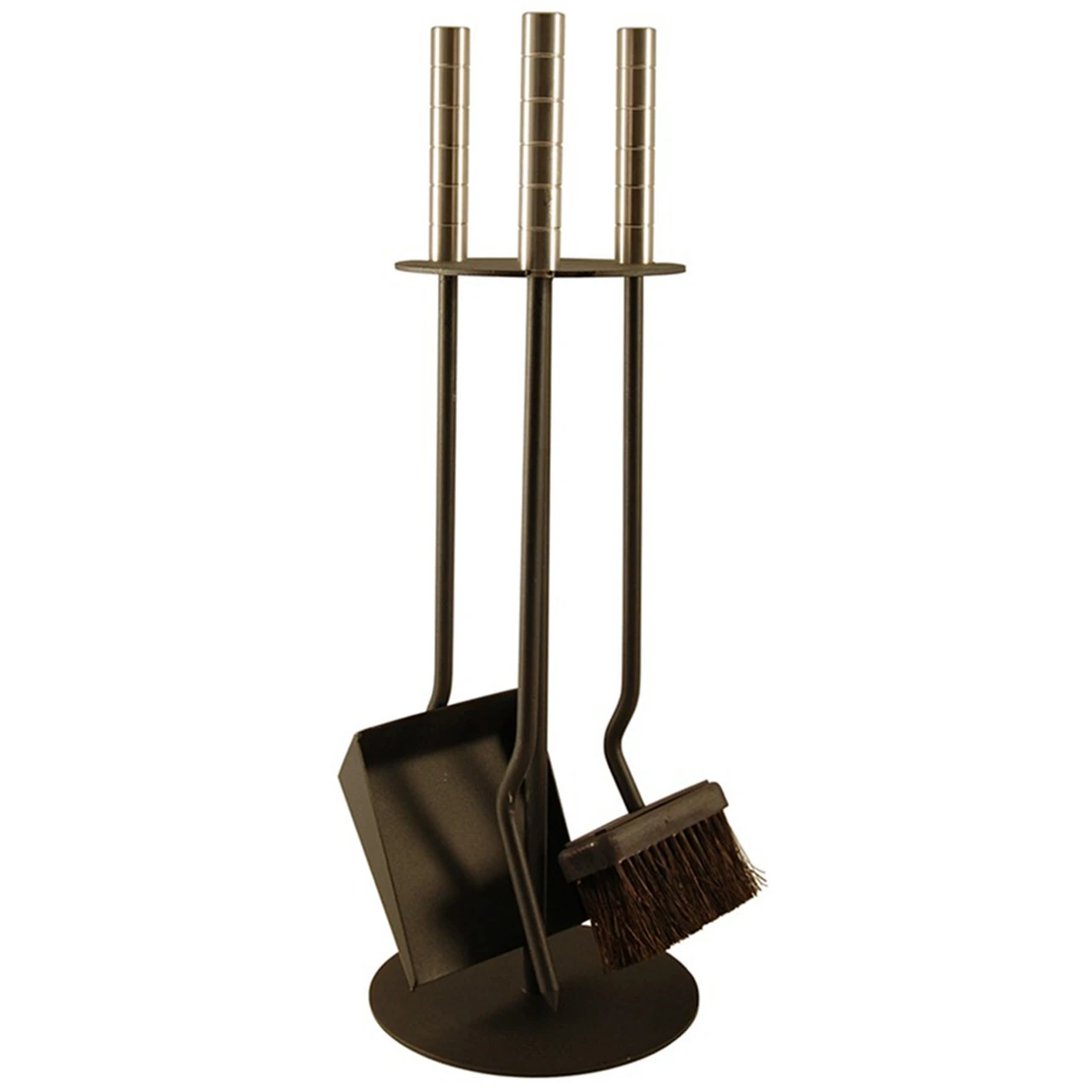 Dieses schöne und schlichte runde Kaminbesteck besteht aus einen Ständer, einer Schaufel, ein Besen und ein Schürhaken. Dieses Modell ist auch in der Farbe Grau erhältlich.
