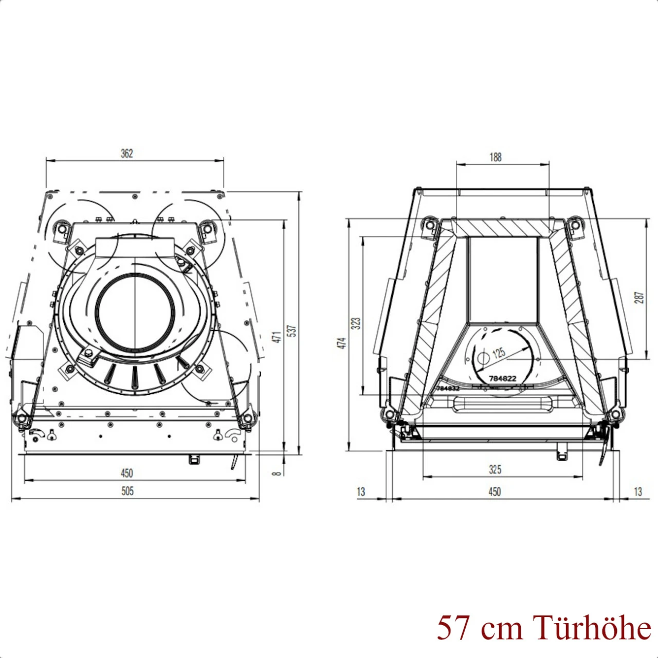 Modell: Austroflamm 45x57K Kamineinsatz mit 6kW gerade Scheibe und DIBt Zulassung