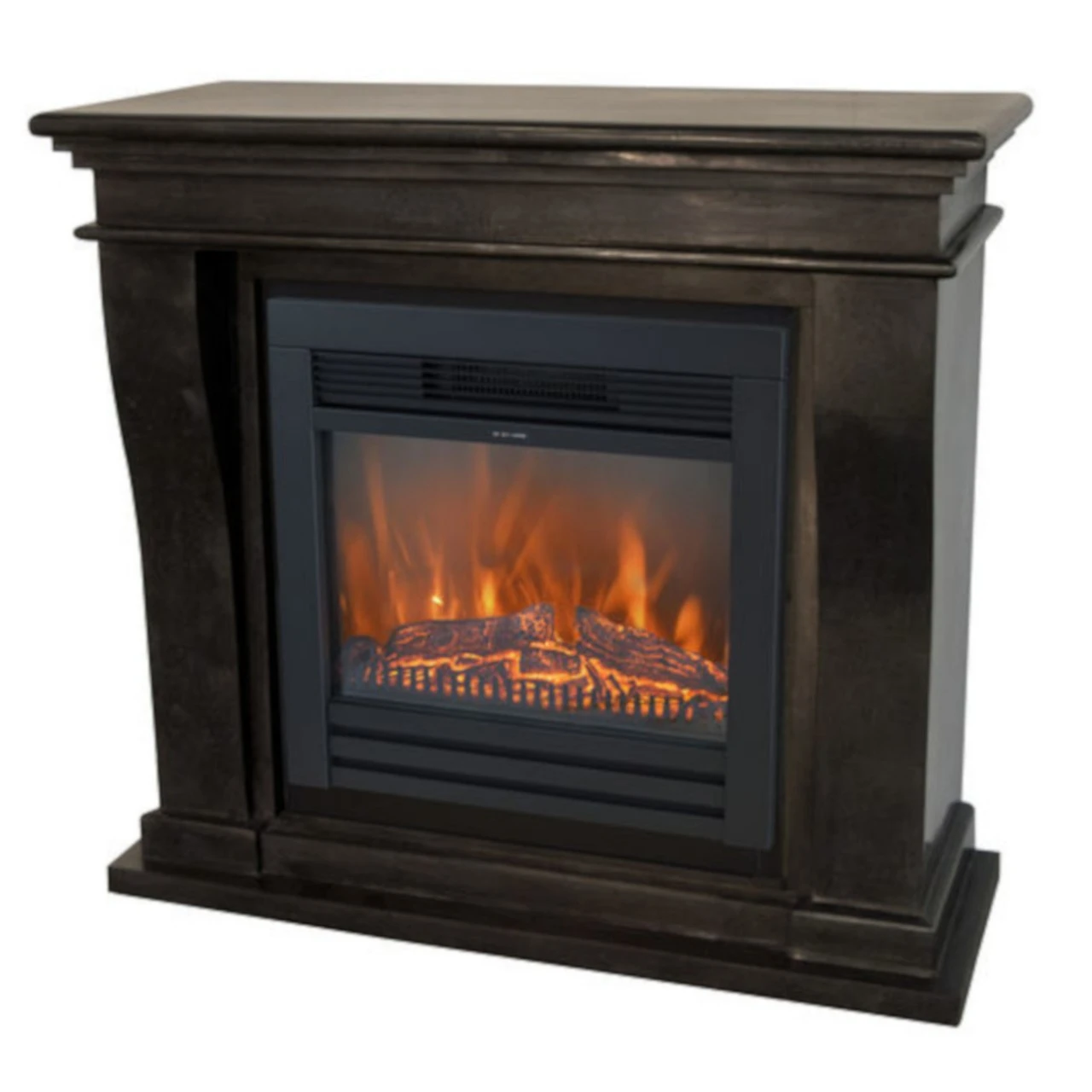 Modell: Kreta Mini Naturstein Schwarz LED Kamin mit Lucius LED Kamineinsatz