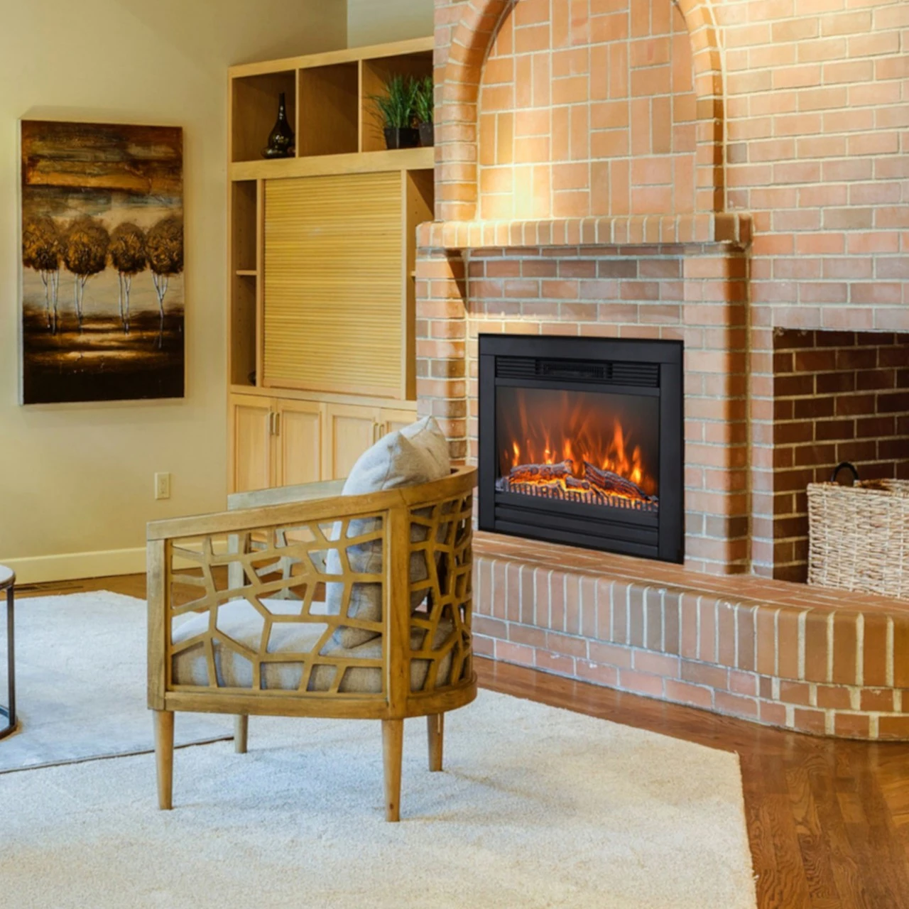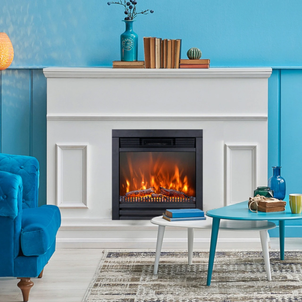 Der Lucius-Kamin kann nur als dekoratives Element mit Flammeneffekt oder als Heizelement verwendet werden. Er ist einfach zu installieren, kann in jedem Raum des Hauses aufgestellt werden und emittiert kein CO2. Dank der Kombination der Holzscheite, die wie ein echtes Feuer leuchten, und der LEDs ist dieser elektrische Lucius-Kamin nicht nur dekorativ, sondern bringt auch ein freundliches Aussehen in den Raum, in dem er installiert ist, und ersetzt so perfekt einen traditionellen Kamin, ohne dabei die Umwelt zu verschmutzen.