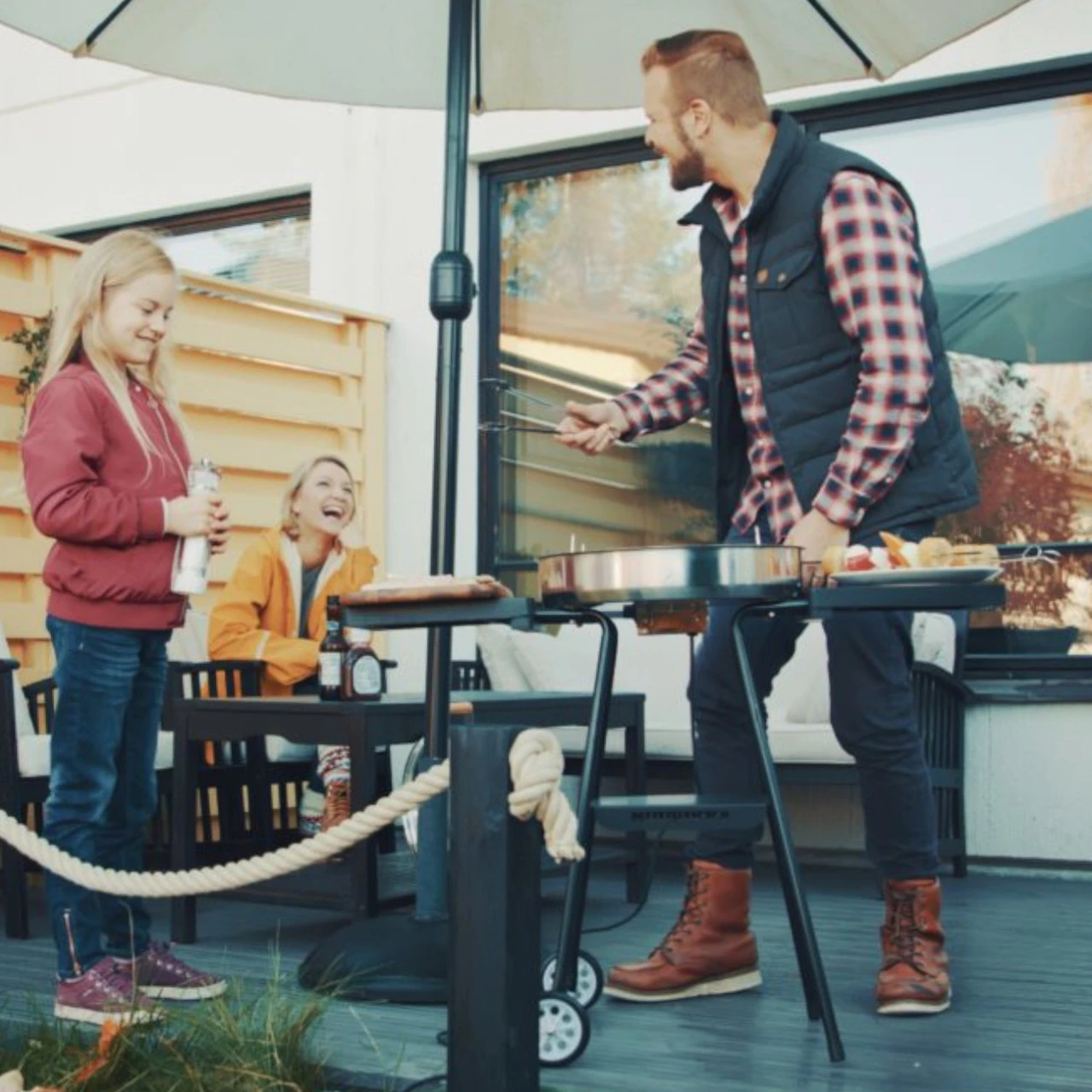 Das neue Retro Design des multifunktionalen Muurikka-Elektrogrill verfügt über stilvolle Beistelltische. Der Muurikka Electric Grill hat: einen Deckel aus Edelstahl, eine Grillplatte und eine Auffangschale aus Alufolie, welche die Reinigung erleichtert.