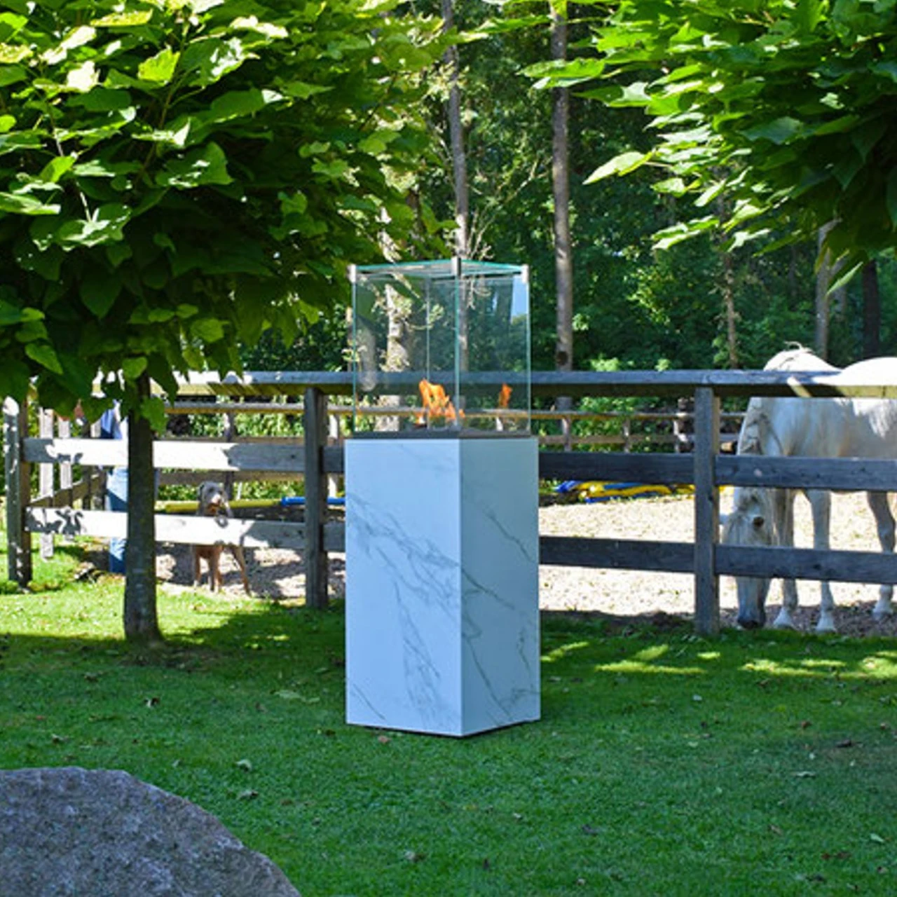 Die Panorama-Glasverkleidung aus hochwertigem Schottglas bietet hervorragende Feuersicht. Durch den perfekten Windschutz ist schönstes Flammenambiente gewährleistet.