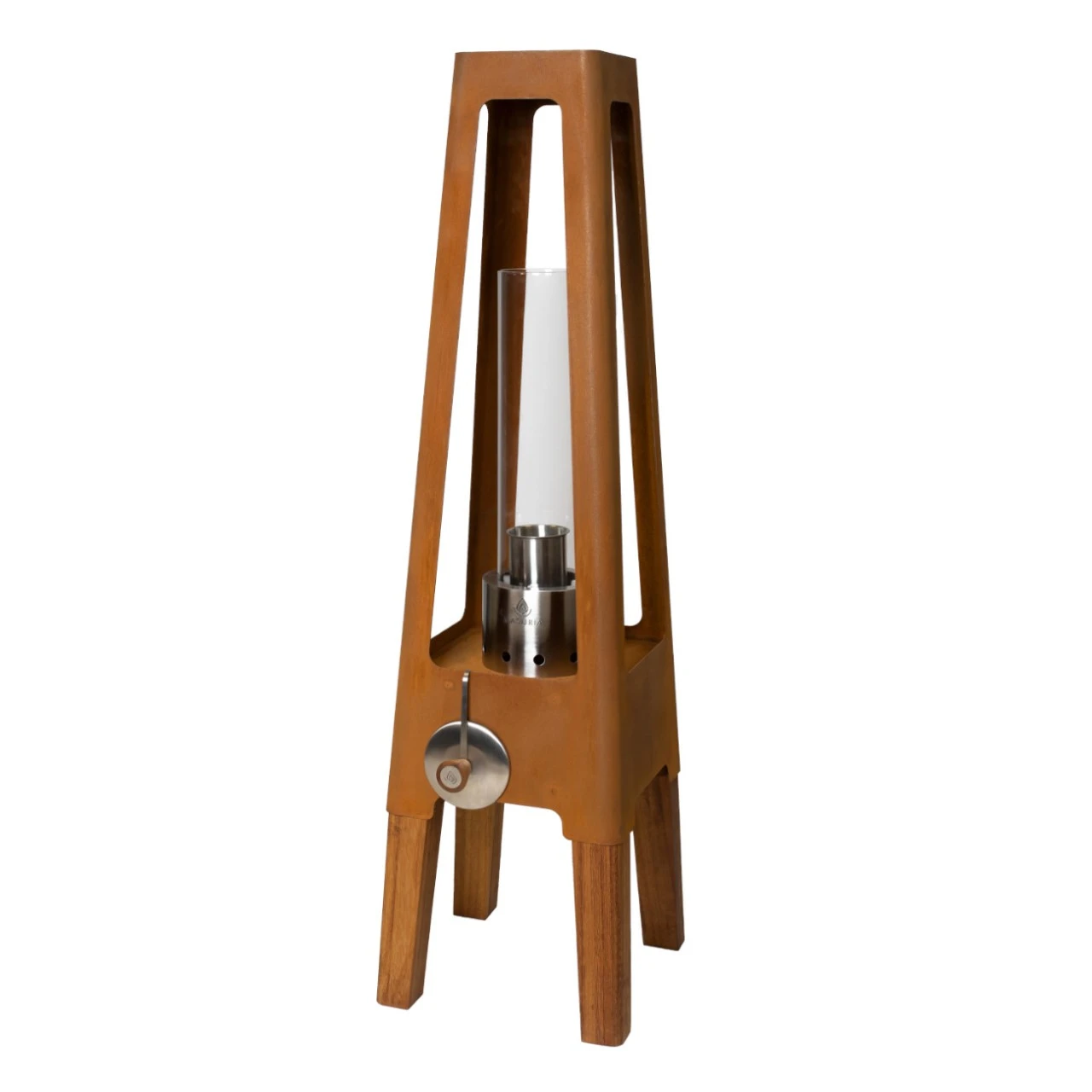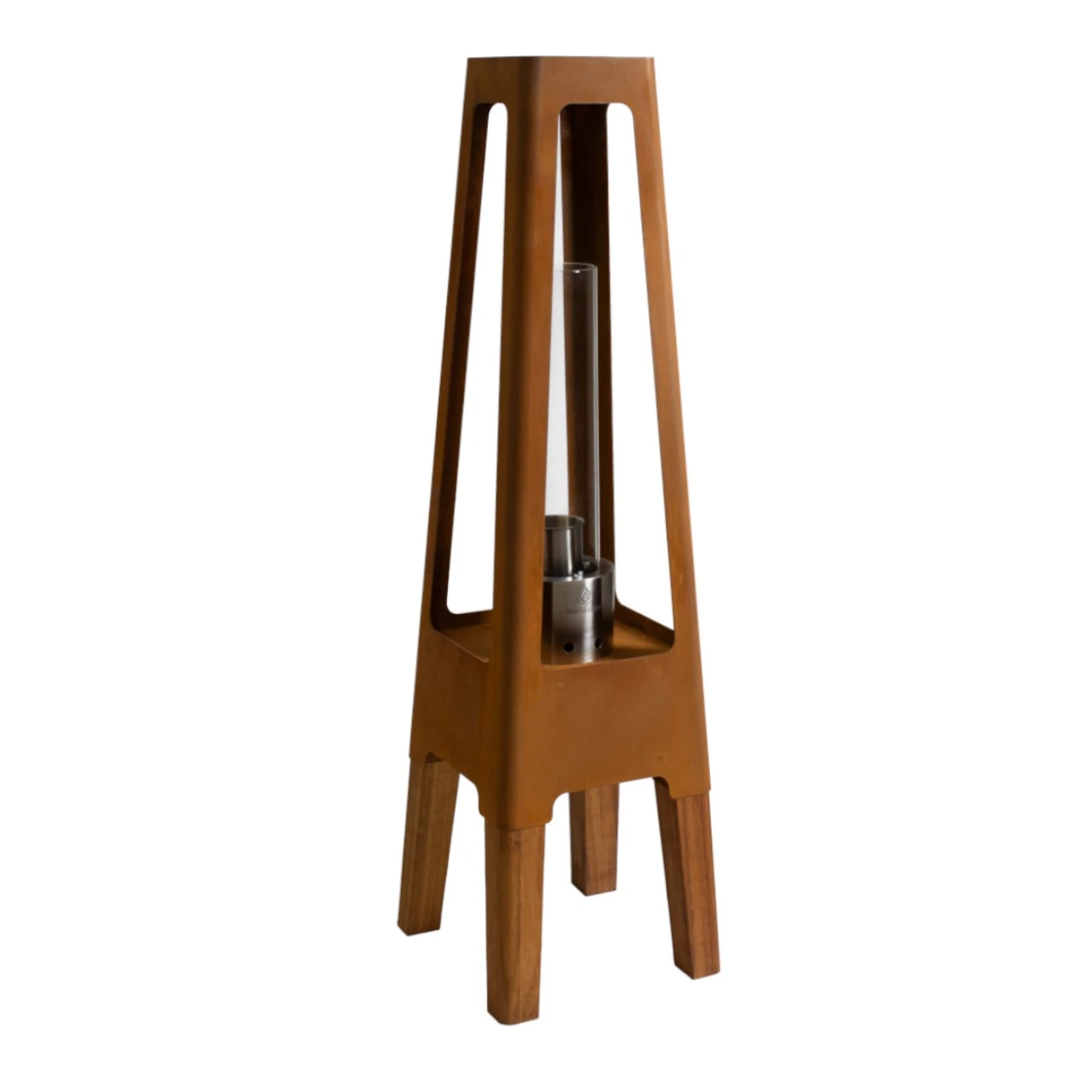 Material: Cortenstahl, Hitzbeständiges Glas, Edelstahl, Exotisches Holz
