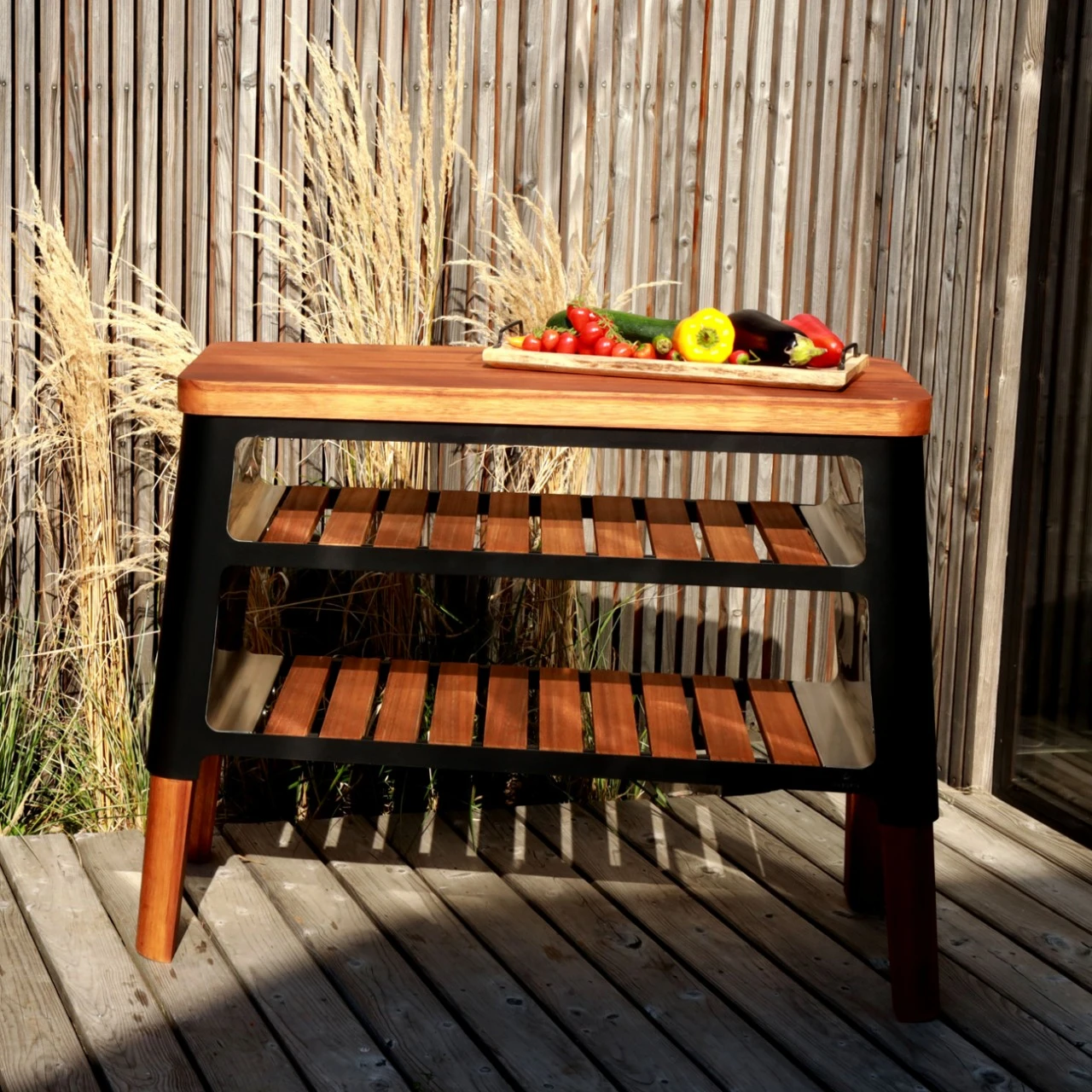 Ein Grilltisch aus der Kollektion Nexo ergänzt nicht nur perfekt den Kamin, bietet zusätzlichen Platz für Teller, Besteck oder Holz, sie kann auch als eigenständiges Möbelstück fungieren. Je nach Ausführung kann sie aus Cortenstahl oder Edelstahl und exotischem Holz gefertigt werden. Darüber hinaus passt sie perfekt in jeden Raum. Ein geräumiges Brett erfüllt Bedürfnisse von allen