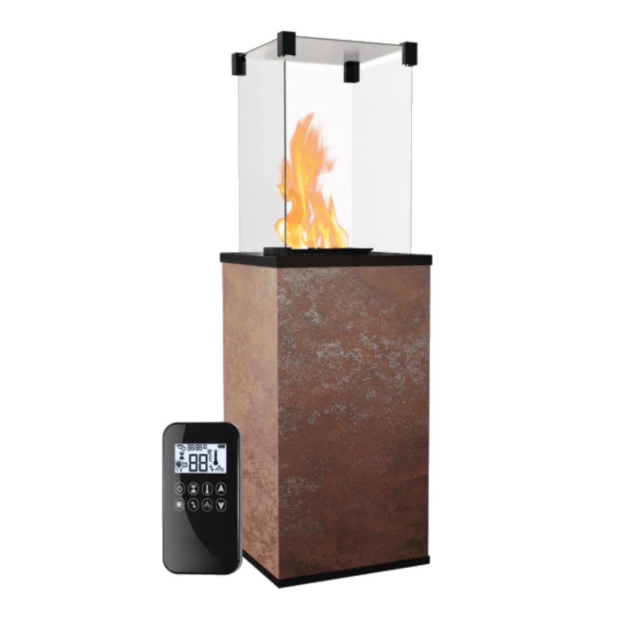PATIO ein stilvoller Heizpilz, der Wärme und Licht überall dort bietet, wo wir eine einzigartige und gemütliche Atmosphäre schaffen wollen. Seine Besonderheit ist, aus allen vier Ecken kann das Feuer betrachtet werden. Dies macht ihn zu einem einzigartigen Terrassen- oder Gartenkamin.