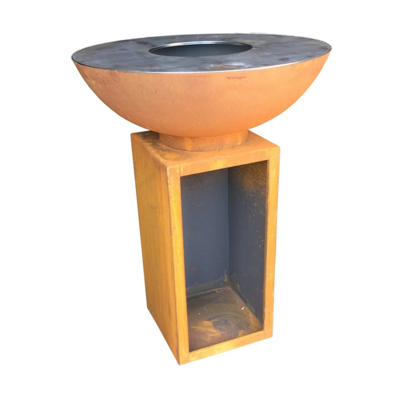 Der mit holzbefeuerte Grill-Eye Plancha Grill ist das neueste Design für das moderne Outdoor-Kochen. Das Design des Grillrings umfasst eine dicke Grillfläche aus Stahl mit einer Öffnung in der Mitte, durch die das Feuer effizient brennen kann. Durch die Positionierung des Holzes, und damit des Feuers, können Sie ganz nach Ihren Bedürfnissen, Zonen mit unterschiedlichen Temperaturen auf der Kochfläche schaffen. Fisch und Gemüse in den kühleren Bereichen und Ihr rotes Fleisch und Ihre Würste in den heißeren Bereichen.