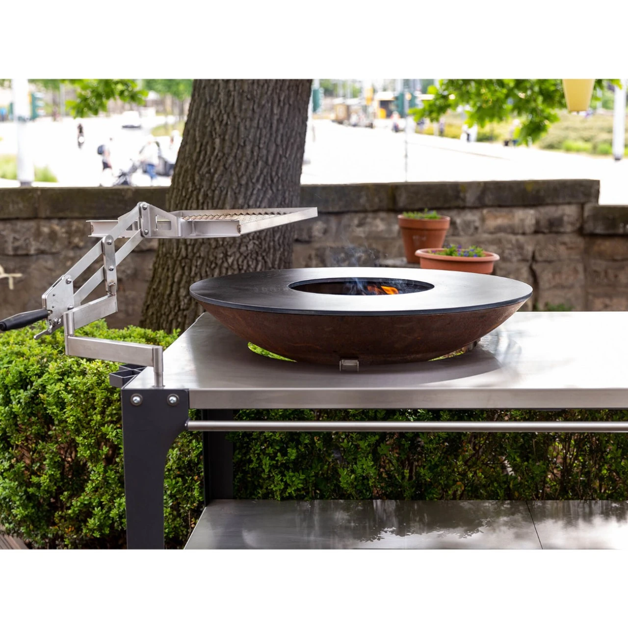 Sie möchten nicht auf den klassischen Grillrost verzichten? Mit dem zugehörigen Schwenkgrill (siehe Zubehör) grillen Sie über dem Feuer oder der Glut in stufenlos verstellbarer Höhe.