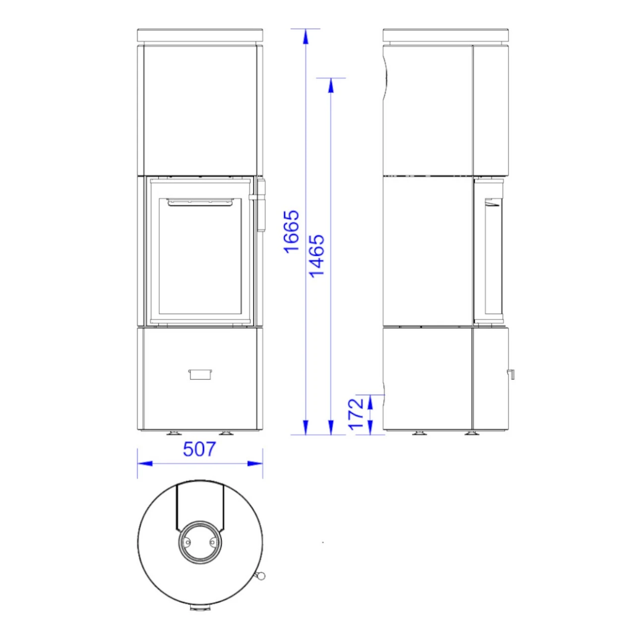- Drehfunktion (nicht in Verbindung mit DIBT) mit drehbaren Rauchgasstutzen: Es besteht die Möglichkeit, einen Drehteller für den Kamin zu erwerben. Somit kann der Kaminofen Prego 60° nach Links oder 60° nach Rechts gedreht werden und Sie können das Feuer aus jedem Winkel genießen.