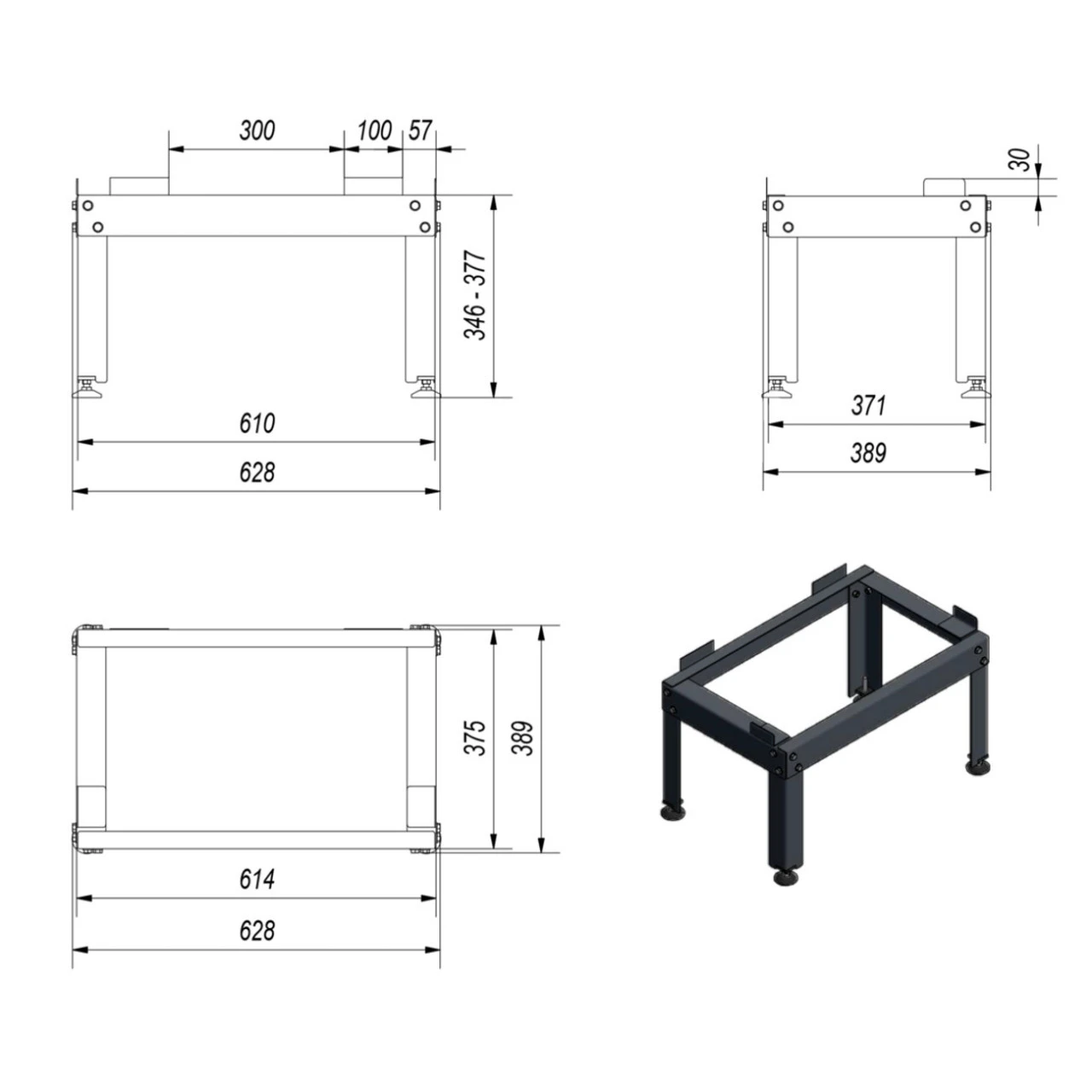 Praktisches höhenverstellbares Untergestell für die Kamineinsatz-Serien Zuzia, Zuzia Eco und Eryk.